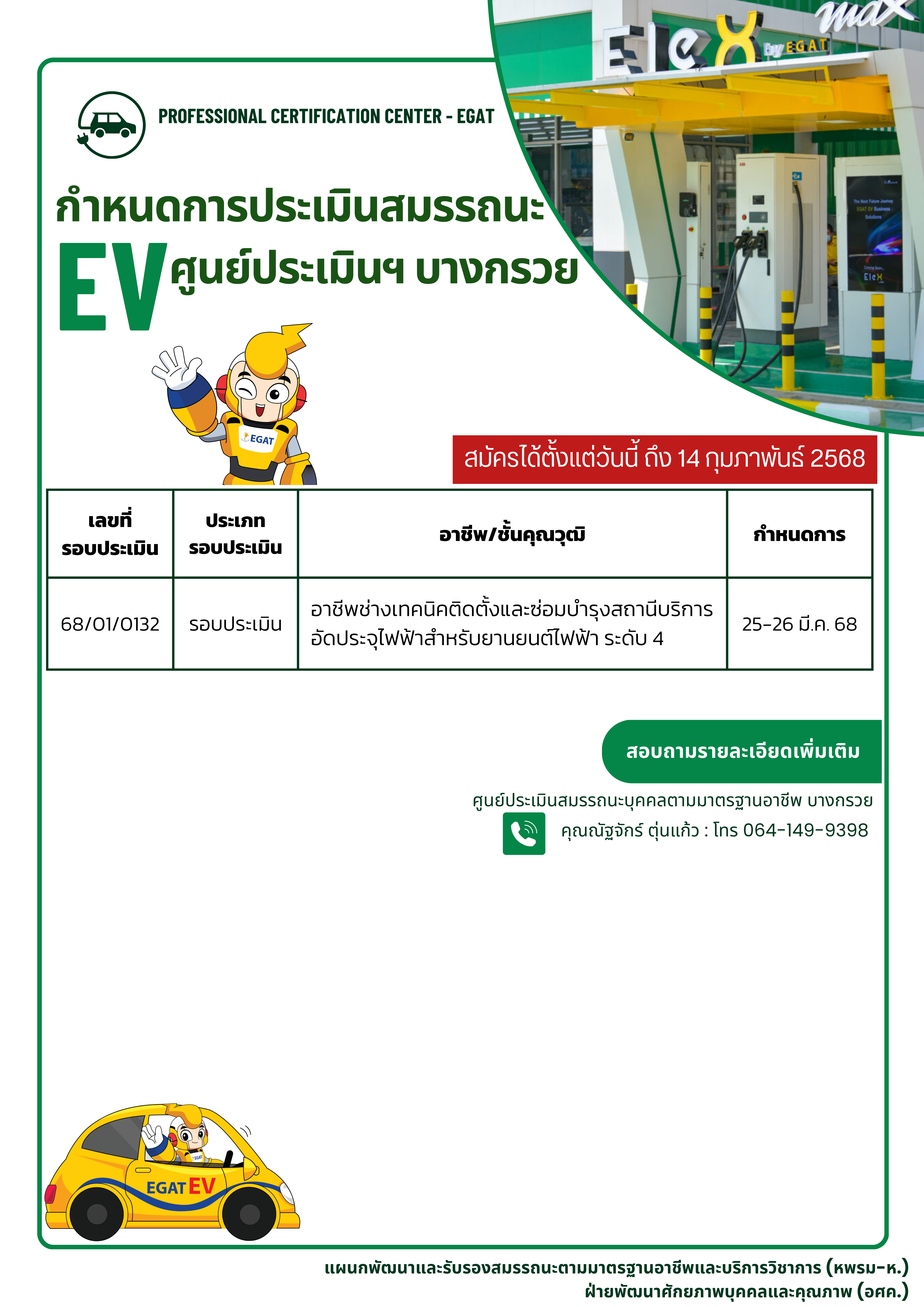กำหนดการประเมินสมรรถนะ สาขาวิชาชีพบริการยานยนต์